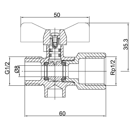 黄铜内外螺纹带底座球阀